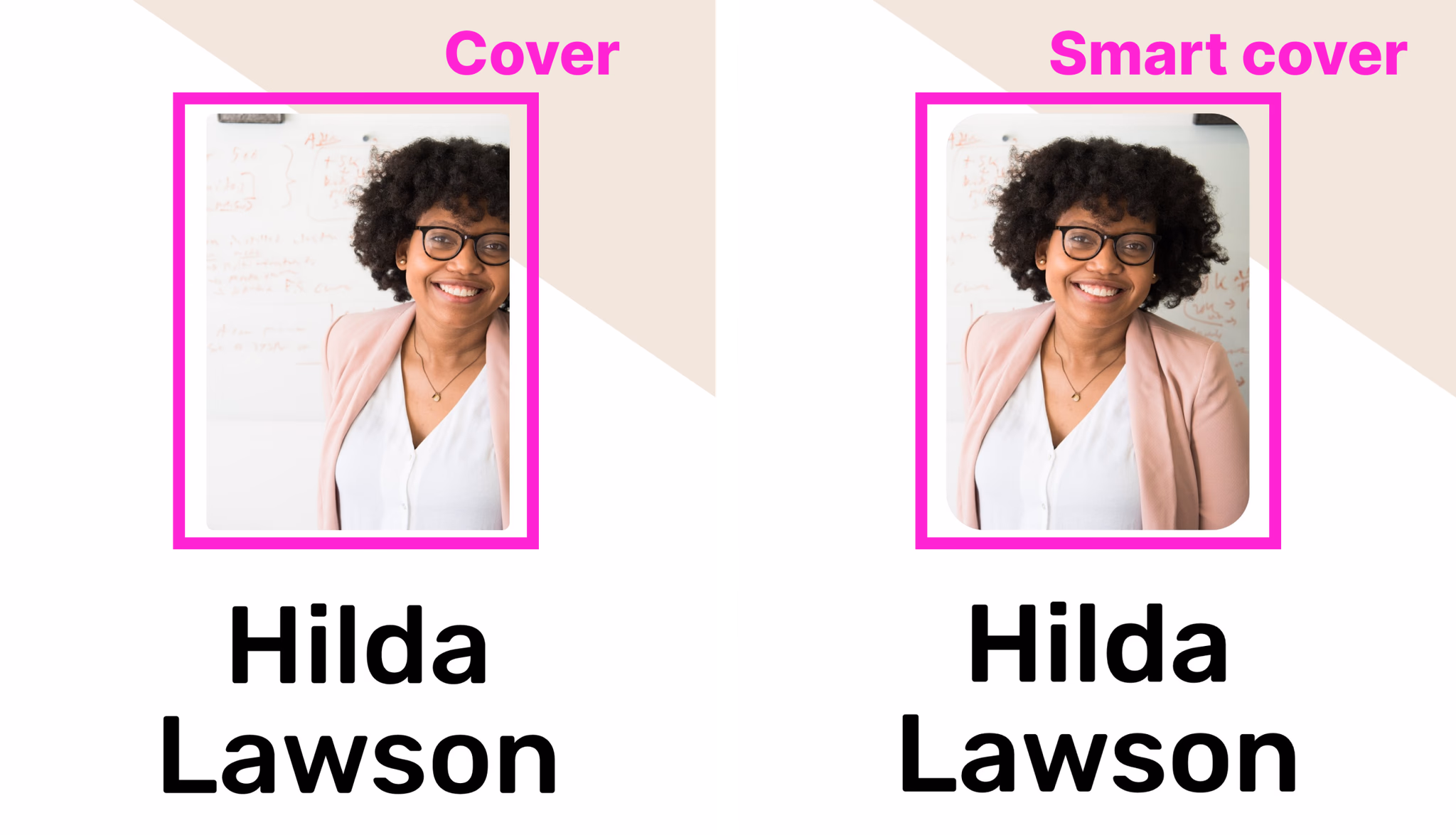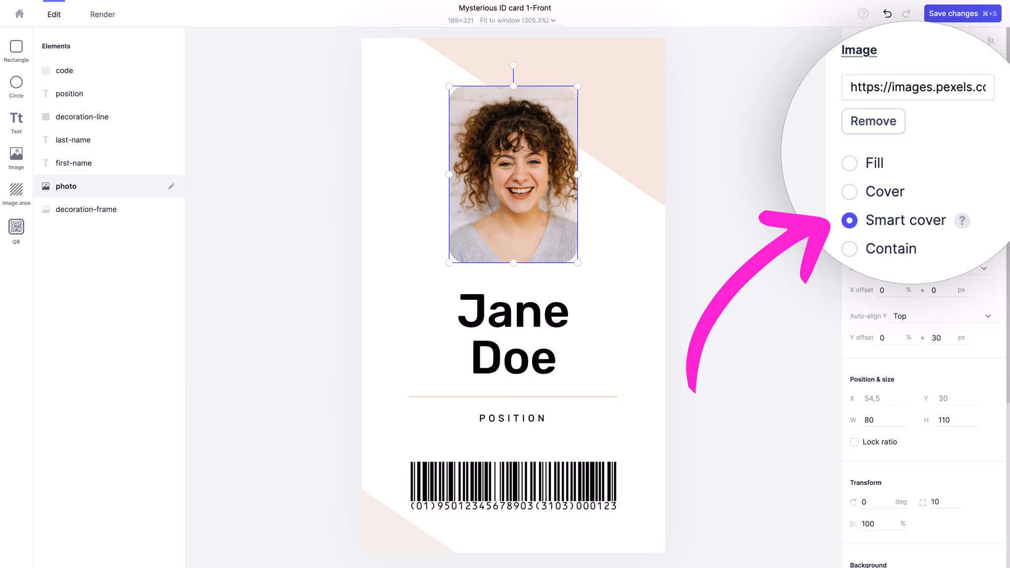Image Smart cover automatically detects the key object in your image and centers it within the text area. It’s a crucial feature for designing truly dynamic designs that look amazing with any content modification. One of the best examples of using the Smart cover in your dynamic designs is face detection.