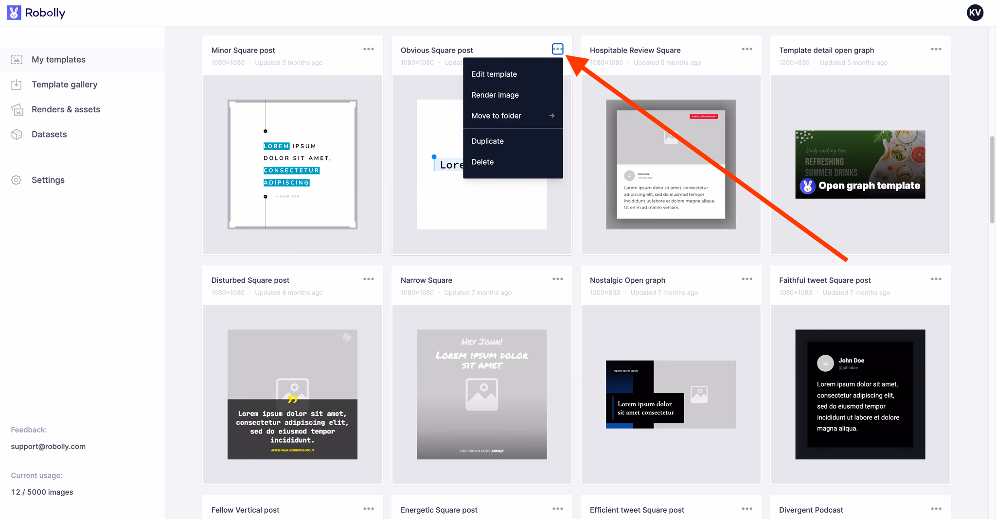 - Click on the three dots icon in the template you want to move.