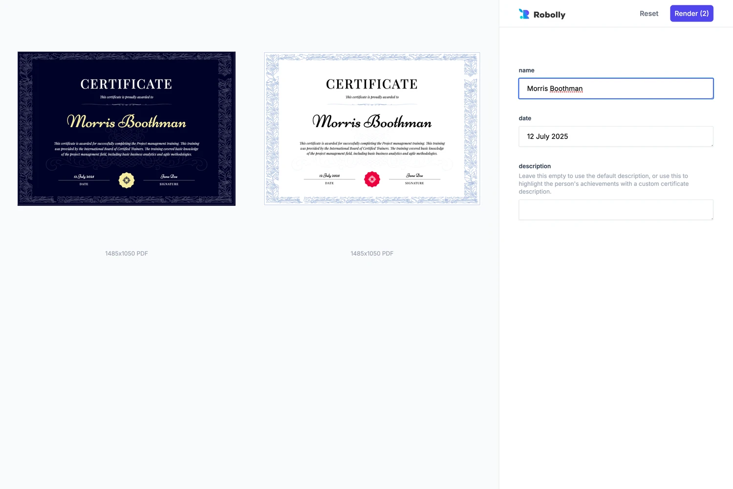 curl "https://api.robolly.com/templates/12345/render.pdf?name=John+Doe&date=27+September+2025"